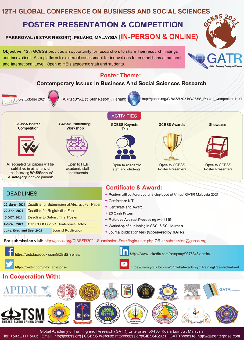 - 12th GCBSS Poster Competition is open to all lecturer/ teacher/ staff/ student in higher education institutions.