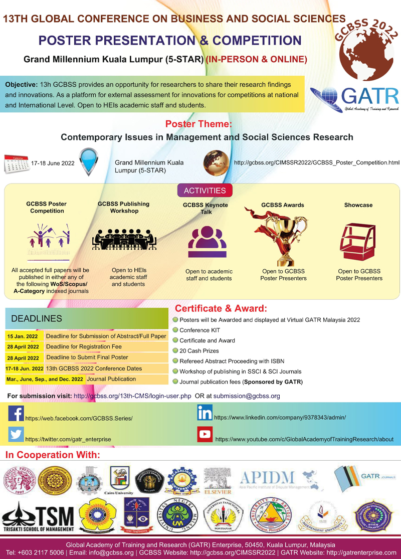 - For submission visit: http://gcbss.org/13th-CMS/login-user.php OR at submission@gcbss.org