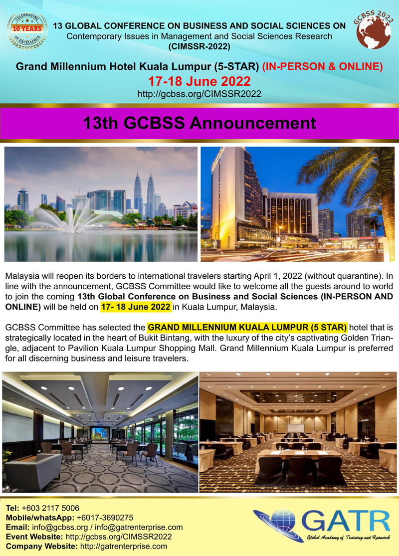 GLOBAL CONFERENCE ON BUSINESS AND SOCIAL SCIENCES