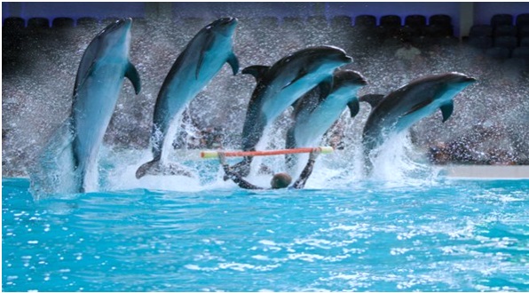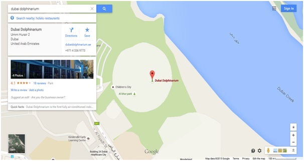 Dubai Dolphinarium is the first fully air-conditioned indoor dolphinarium in the Middle East, providing habitat to dolphins and seals, allowing the public to watch and interact with them through live shows and photo sessions.It is located in the creek side park at Bur Dubai near the Children's City. Dubai Dolphinarium was opened on May 21, 2008 by Dubai Municipality, and is sponsored and supported by Dubai government to provide the general public with entertainment and also educate them regarding dolphins, seals and other marine organisms.