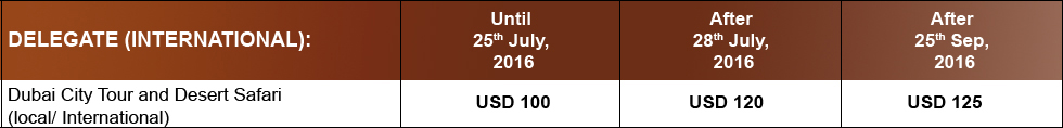 Research networking takes place in informal setting. We have organised half day Dubai city tour. While touring, you build up research team and increase your research output. Please pay tour registration fee and submit slip at gcbss2016@gmail.com