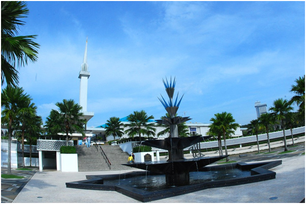 The National Mosque is located right next to the architecturally fabulous old railway station, and just a short walk to the sprawling Lake Gardens and National Monument.