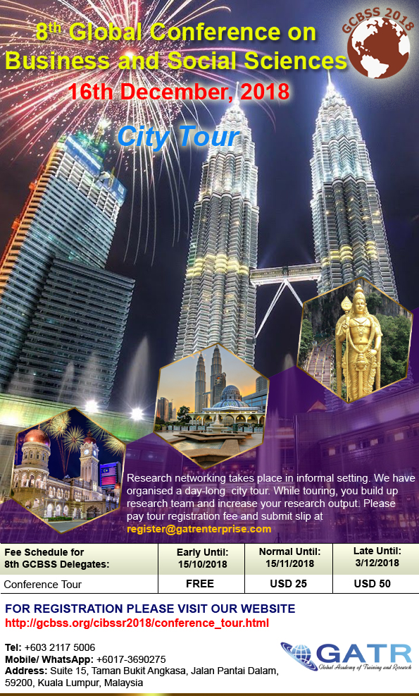 8th GLOBAL CONFERENCE ON BUSINESS & SOCIAL SCIENCES 2018 KUALA LUMPUR TOUR ON 16 December, 2018