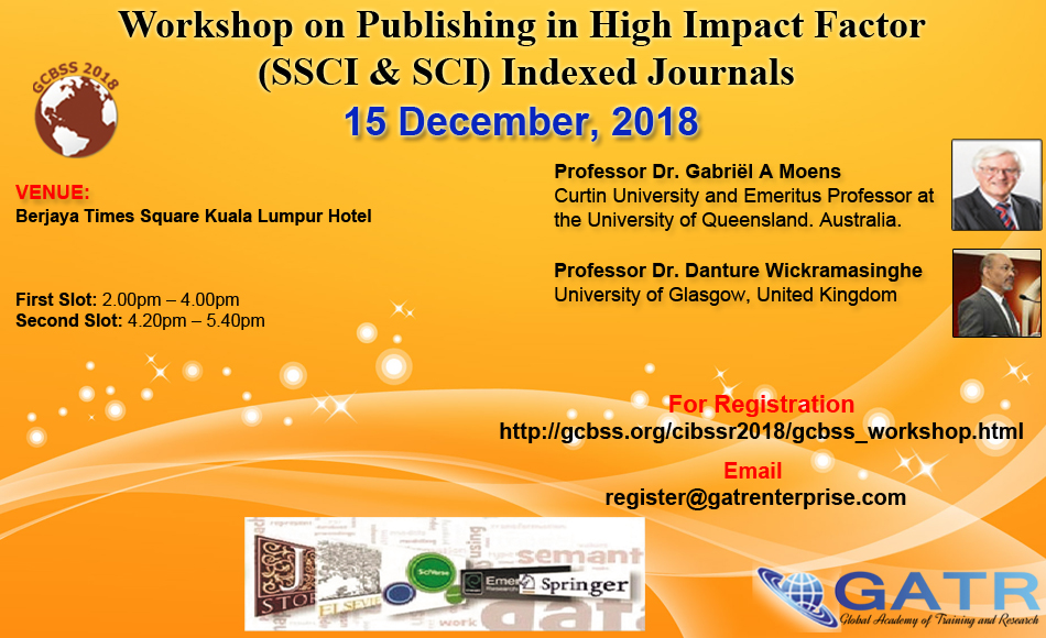 8th GCBSS concurrent event workshop on ''How to Publish in High Impact Factor ISI Journals" Please download the form for workshop registration and submit it along with payment slip at register@gatrenterprise.com and Cc to admin@gcbss.org