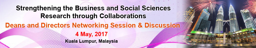The 5th annual Global Conference on Business and Social Sciences Deans & Directors networking session is a strategic level event for determining trends in future Business and Social sciences research around the globe for sharing experiences and for discussing areas of mutual interest.