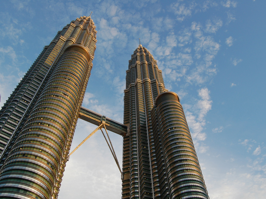 The Petronas Towers, or the Petronas Twin Towers, are twin skyscrapers in Kuala Lumpur, Malaysia. According to the Council on Tall Buildings and Urban Habitat's official definition and ranking, they were the tallest buildings in the world from 1998 to 2004 when they were surpassed by Taipei 101. The Petronas Towers remain the tallest twin towers in the world. The buildings will remain the tallest buildings in Malaysia until the completion of the Merdeka PNB 118. They are a major landmark of Kuala Lumpur, along with nearby Kuala Lumpur Tower, and are visible in many places across the city.